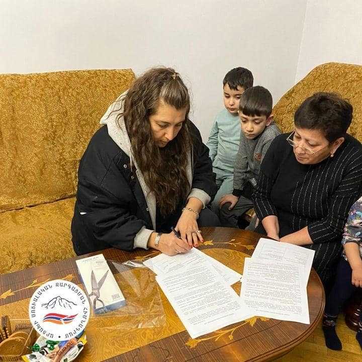 👉Իշխան Սարգսյանի ընտանիքը բռնի տեղահանվել է Մարտակերտի շրջանի Կոճողուտ գյուղից: Այժմ բնակվում են Արագածոտնի մարզի Աղձք գյուղում։ Ընտանիքը բաղկացած է 11 անձից, 9 երեխաներից 8-ը անչափահաս են։ Գյուղում ունեցել են 2 փուռ, զբաղվել են հողագործությամբ: ✅Արցախի սոցիալական զարգացման հիմնադրամը Իշխան Սարգսյանին տրամադրել է գյուղատնտեսական գործիքներ աշխատելու և ընտանիքի համար եկամուտ ապահովելու համար: ✅ Ծրագիրը ֆինանսավորվել է Ֆրանսիայում հայկական Արմատ կրթօջախի կողմից կազմակերպված բարեգործական երեկույթի հասույթից: